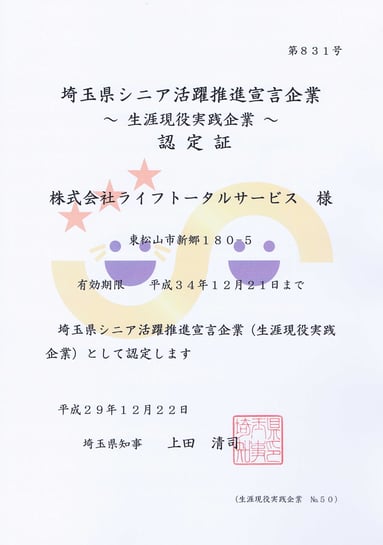 弊社は、「シニア活躍推進宣言企業」として、人生をポジティブに生きようとするシニア世代を応援させて頂きます。